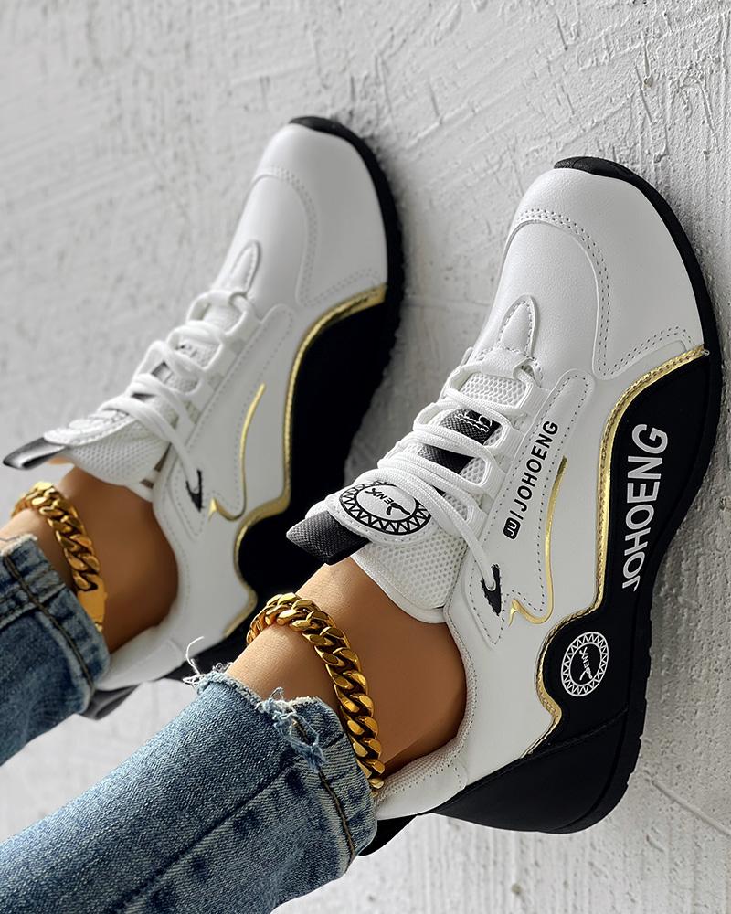 • Colorblock Letter Print Lace-up Platform Casual Sneakers