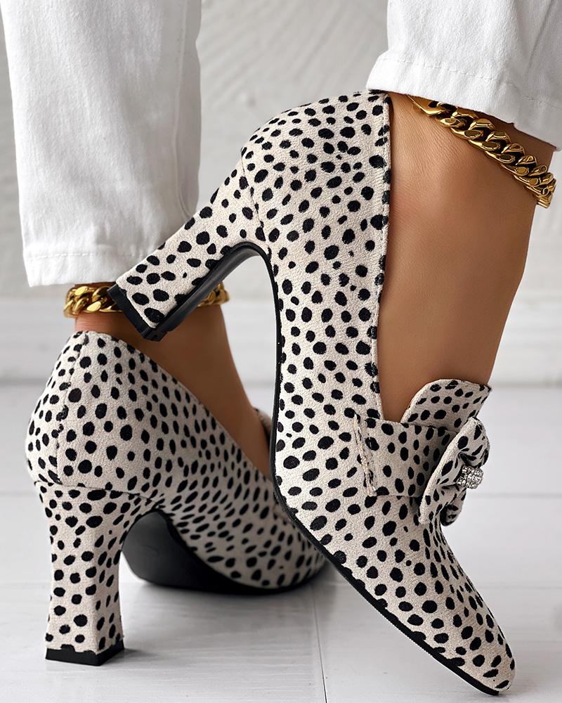Leopard Pattern Bowknot Decor Pumps