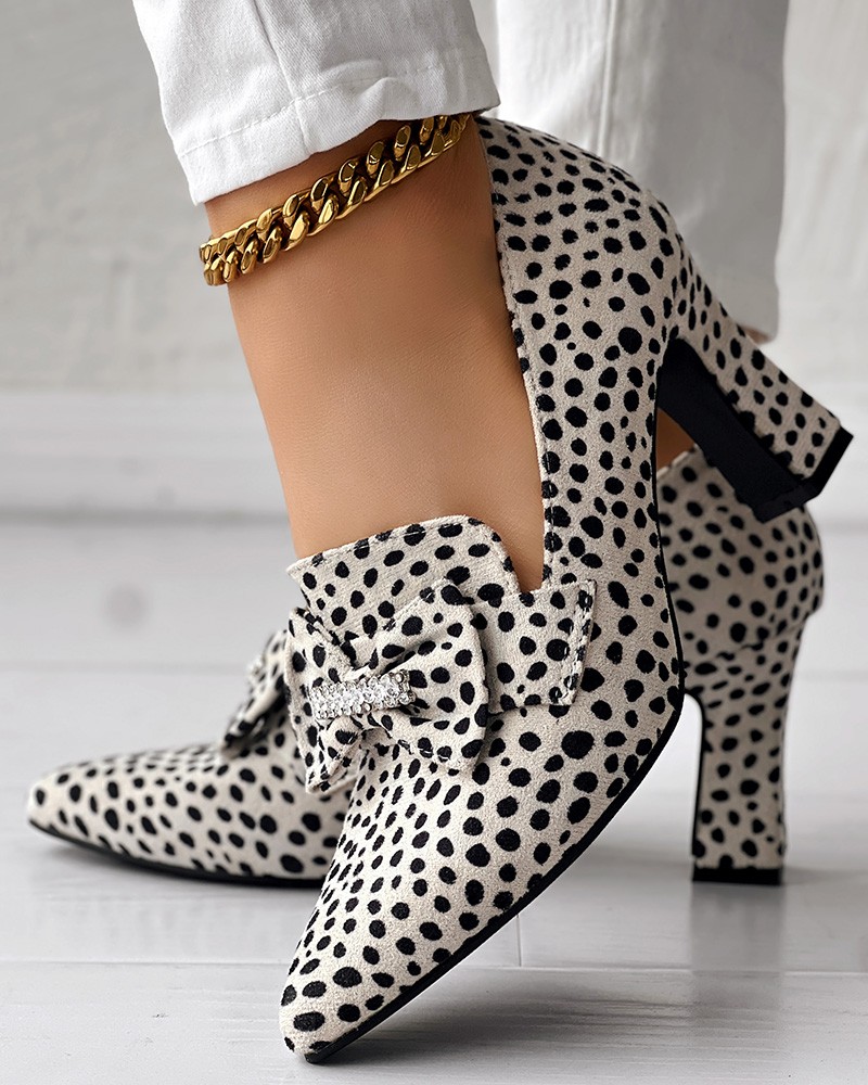 • Leopard Pattern Bowknot Decor Pumps