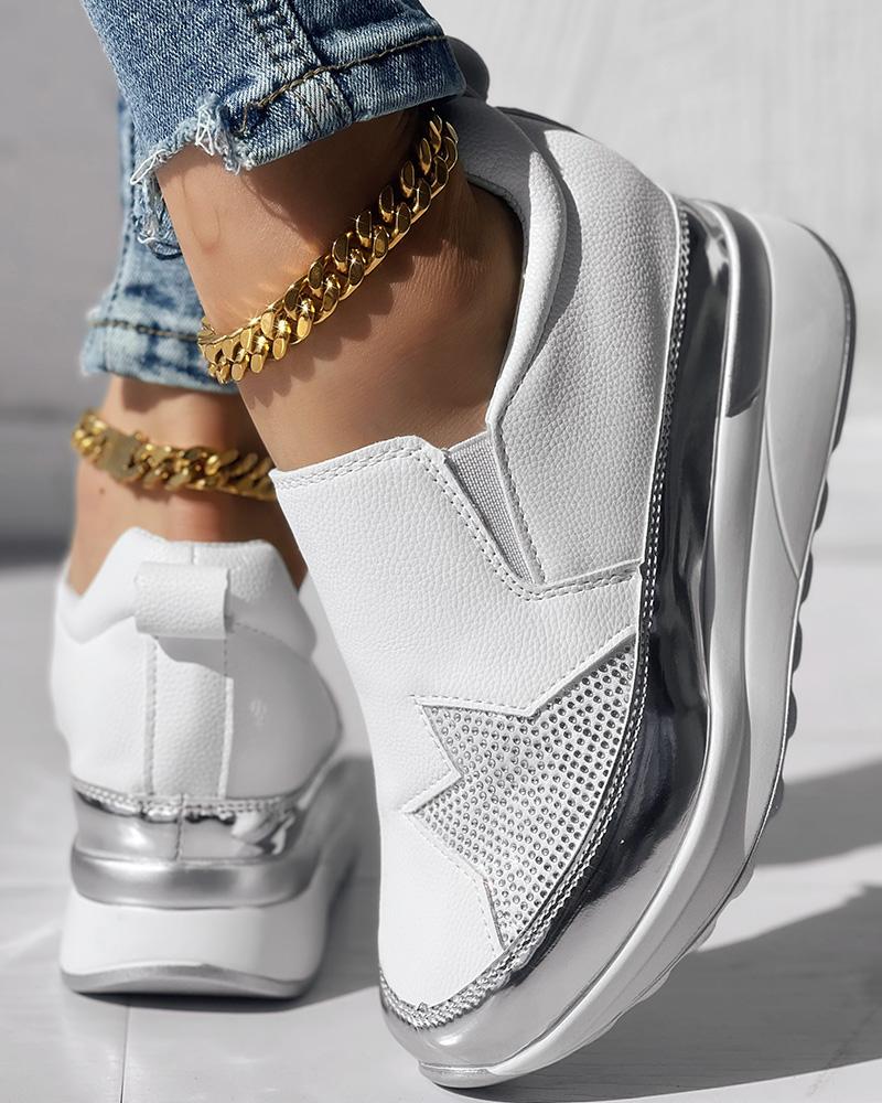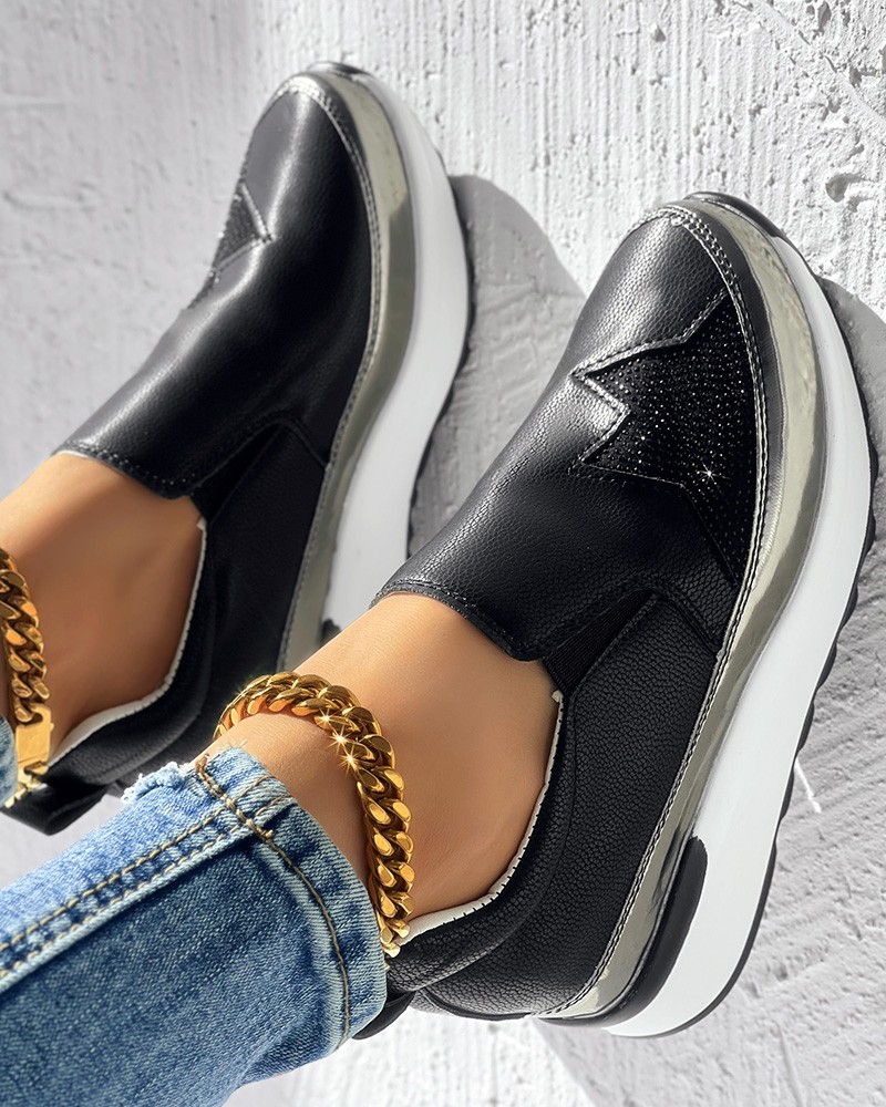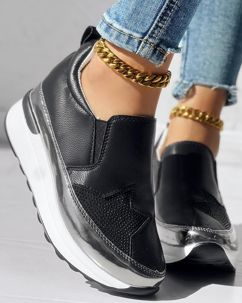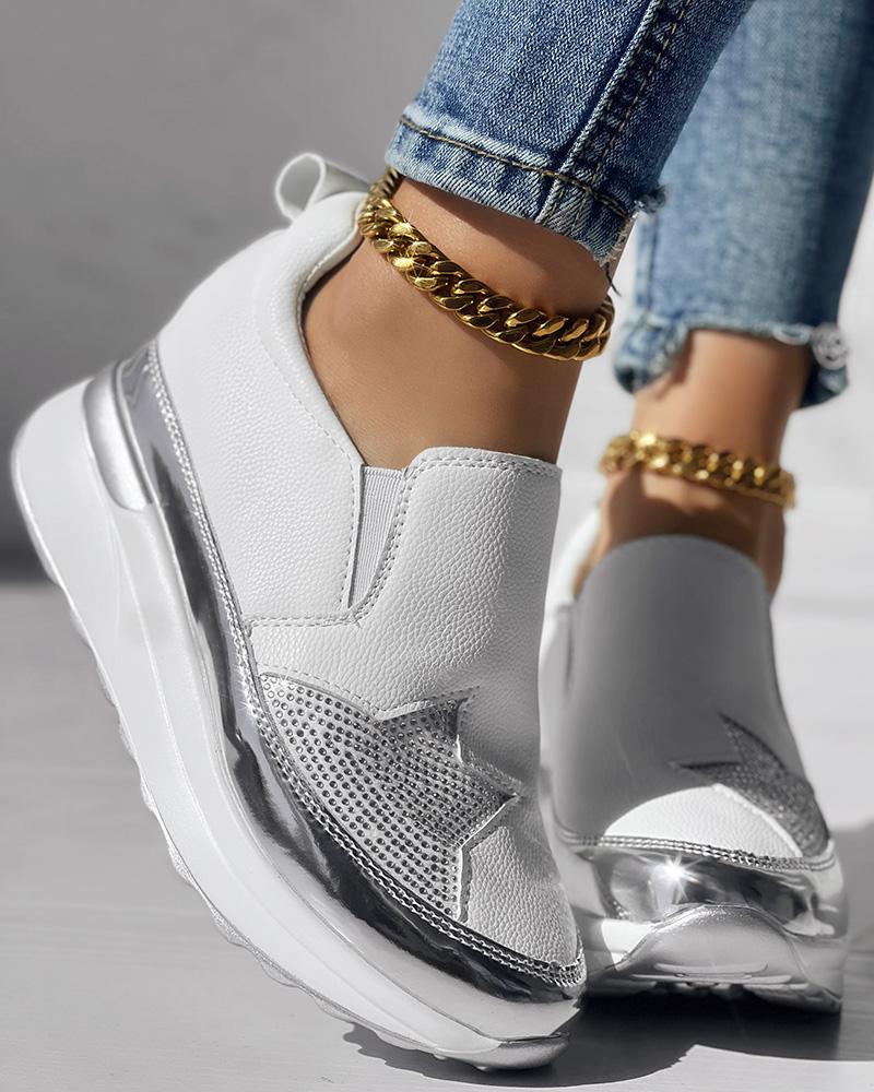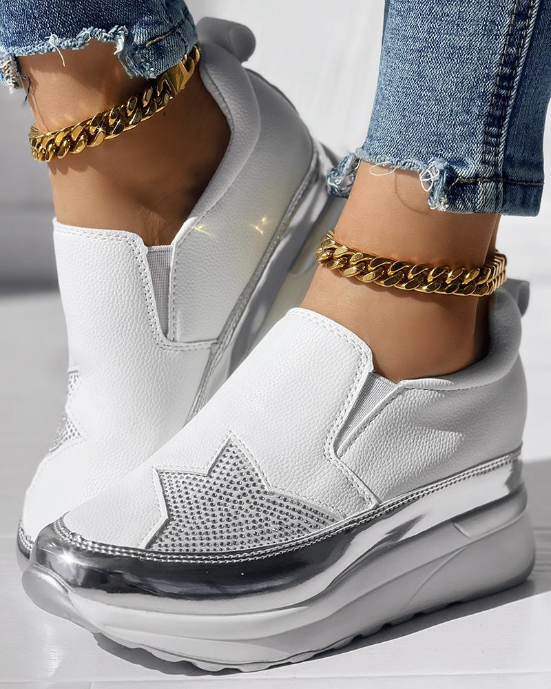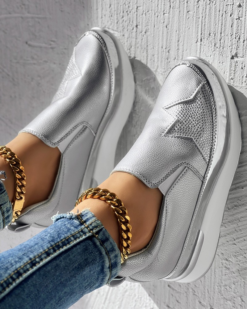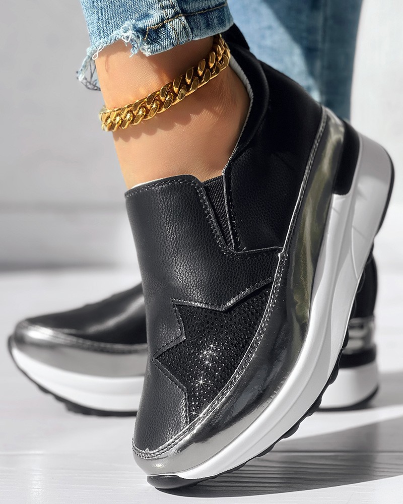 • Rhinestone Star Pattern Platform Muffin Sneakers
