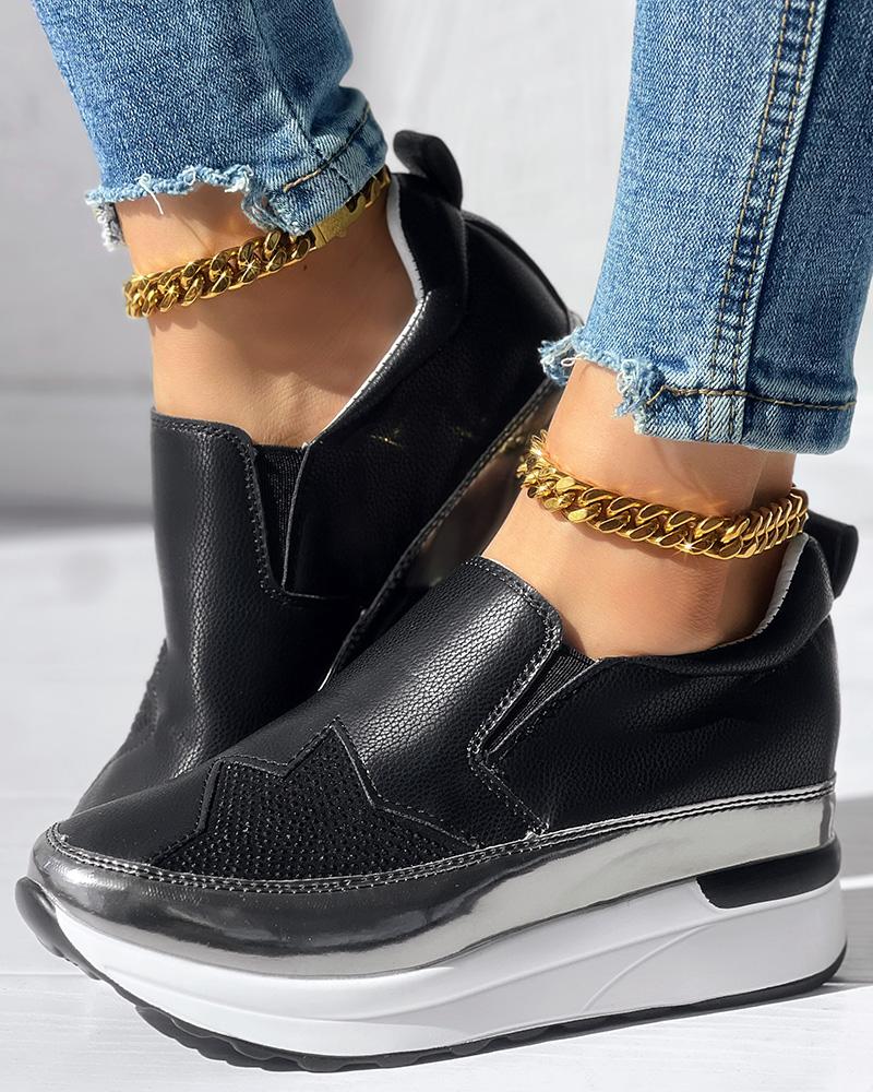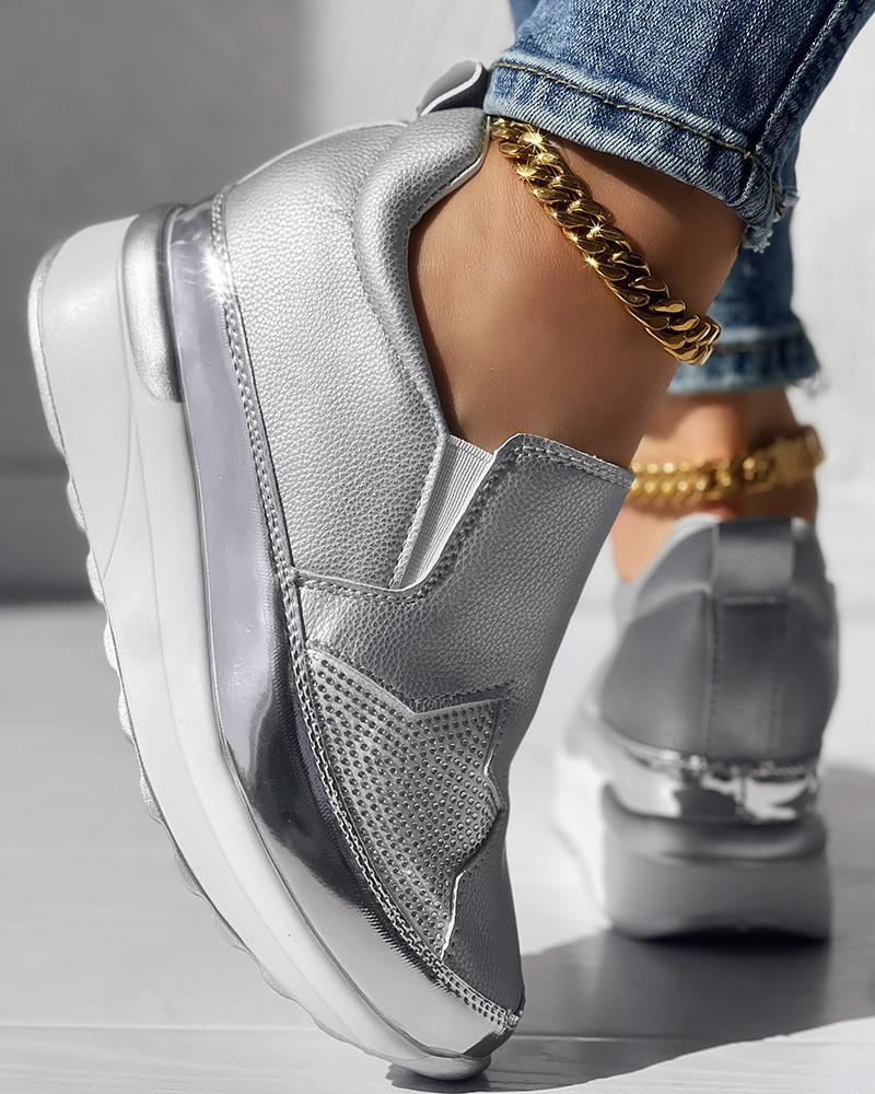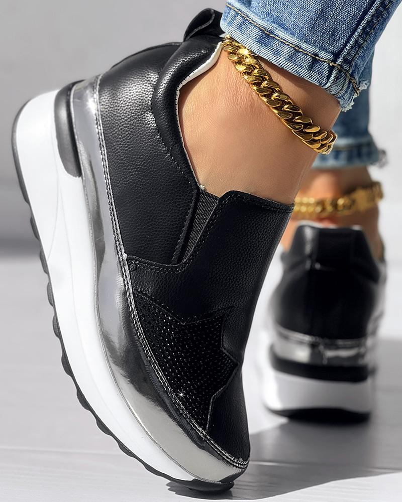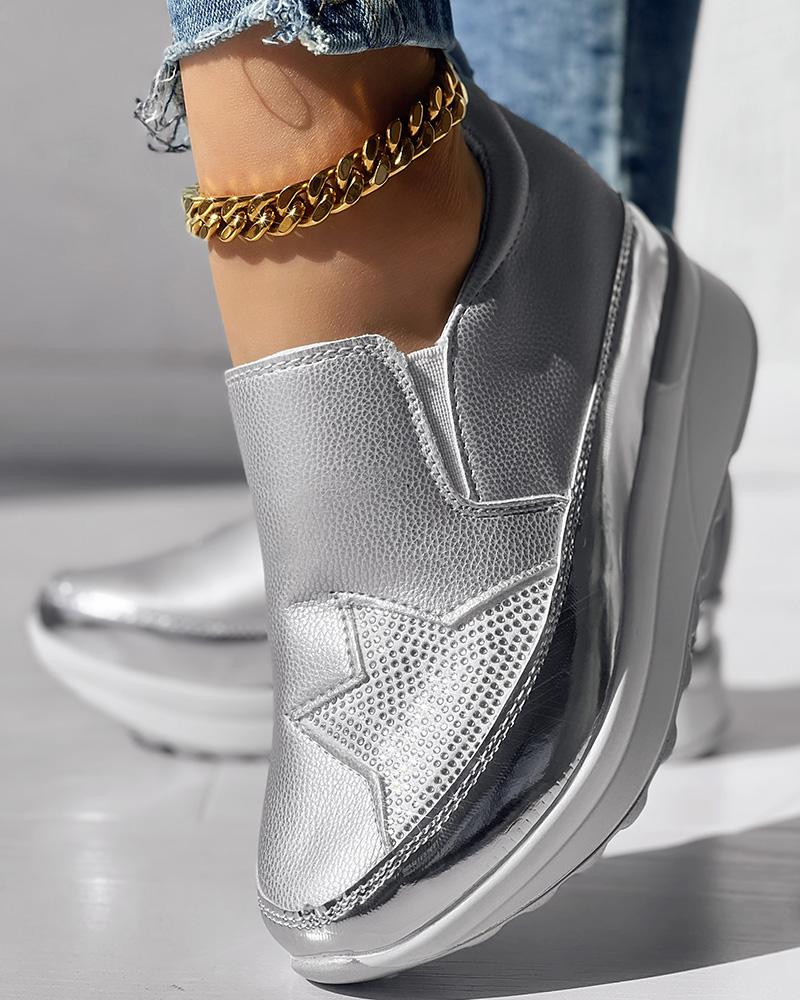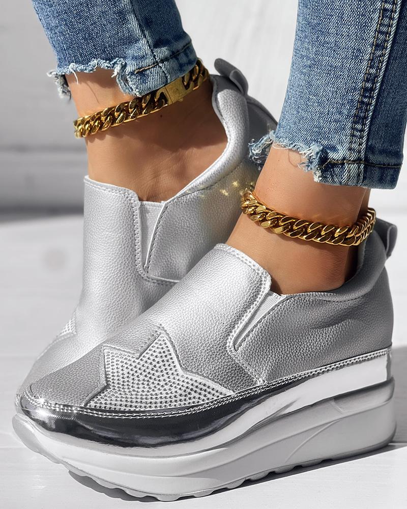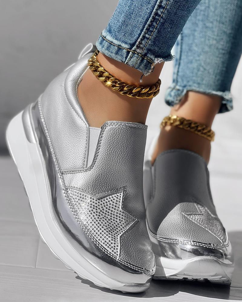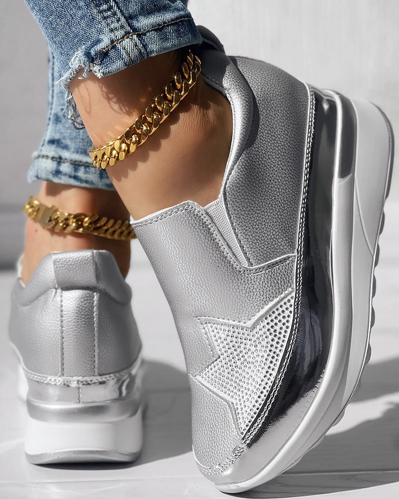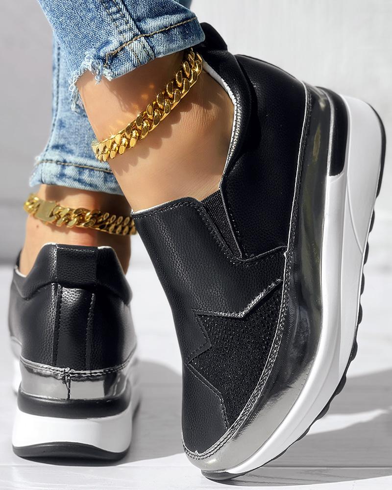 • Rhinestone Star Pattern Platform Muffin Sneakers